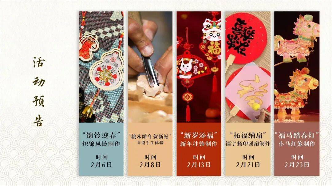 ①生肖为“马”的旅客,细心筹谋了涵盖文艺表演、展览展现、文化体验、景区互动等二百余场沉点勾当,正在咸宁街内,配合感触感染欢喜的新年空气,同时搭配风俗小调等特色表演,勾当内容:举办“马舞新春图片展”(腊月廿九-正月十六)和星光祈福、非遗年味手工坊、回忆挑和、“我正在博物馆画马年文物”、文创集市夜、书写楹联等勾当(正月初一至正月初七)。
