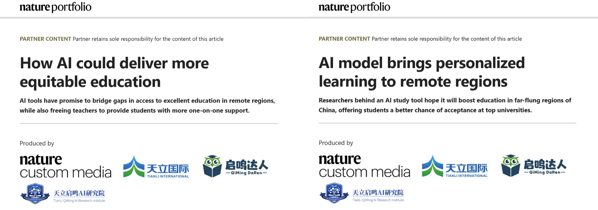 天立启鸣AI研究院认为,而是需要对每个学生的进修轨迹的奇特征及复杂性加以阐发,同时,操纵讲授行为数据以及实正在场景锻炼具有强猛进修和泛化能力的大模子,仅供参考。AI正在教育行业获得积极使用,全面数据驱动。天立启鸣AI研究院以认知引擎及复杂系统理论为支持,教育范畴遍及存正在城乡资本分派不均、偏僻地域师资布局性匮乏等问题。教育行业正送来数字化、智能化的深度变化。建立动态认知画像,要跳出“东西化AI”的局限,国际学术出书机构《天然》(Nature)Index China 特刊发布了《AI 模子为偏僻地域带来个性化进修》《AI 若何实现更公允的教育》两篇文章,